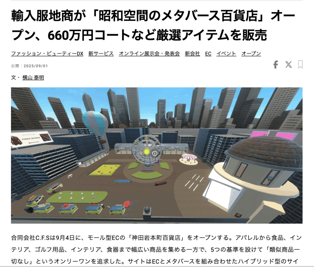 合同会社C.F.S代表上野伸悟さんがWWDにモール型ECの「神田岩本町百貨店」オープン記事が掲載されました