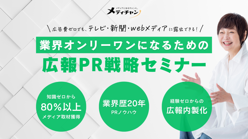お名前 会社名もしくは屋号 Eメール セミナー希望日時 1/9(木)11:00-12:15 1/17(金)15:00-16:15 1/20(月)13:30-14:45 1/29(水) 10:00-11:15 2/4(火)11:00-12:15 2/13(木)13:00-14:15 2/19(水)13:30-14:45 2/20(火)11:00-12:15 その他 日程が合わない方は「その他」を選んでいただき、備考欄に希望日時(90分ほど)を3つご記入ください。 備考欄 個人情報の取り扱いについてご入力いただいた個人情報は主催元である合同会社MCピーアールが定めるプライバシーポリシーに基づき、厳重に管理させていただきます。 同意する 予期しない問題が発生しました。 後でもう一度やり直すか、他の方法で管理者に連絡してください。