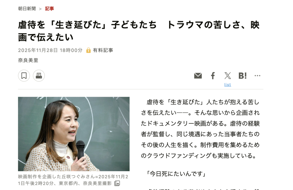 一般社団法人Onara代表丘咲つぐみさんが11月8日付朝日新聞に掲載されました
