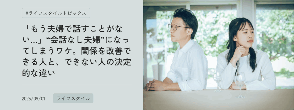 ”「もう夫婦で話すことがない…」“会話なし夫婦”になってしまうワケ。